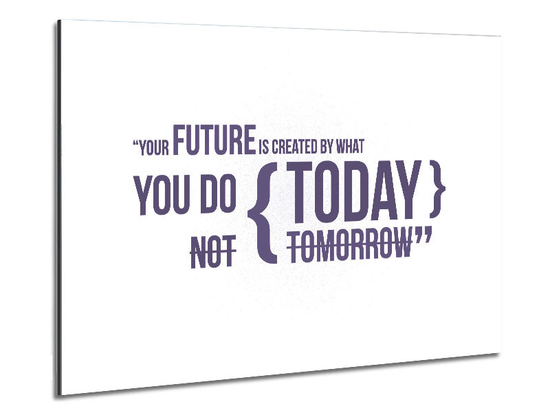 Motivational Quote Your Future Is Created By What You Do Lilac Printed on brushed aluminium dibond. A modern way to display art and easy to maintain.