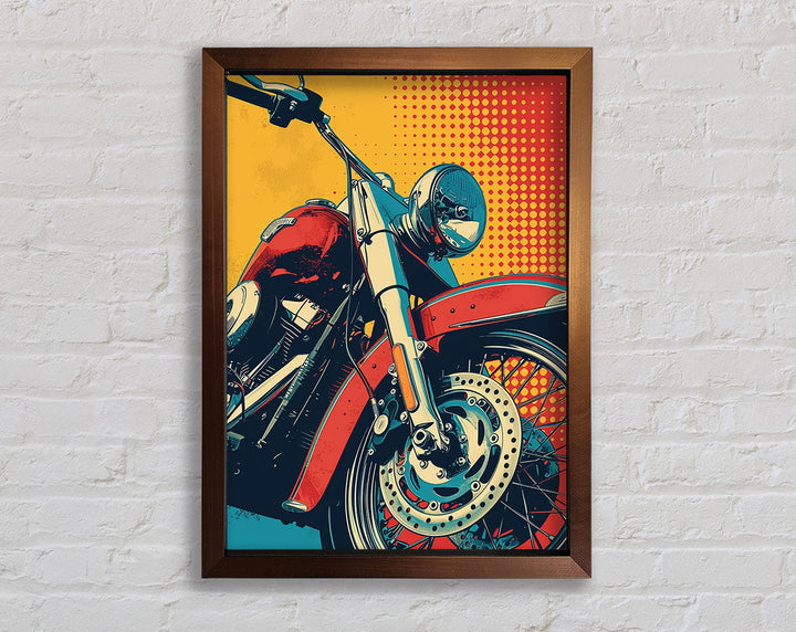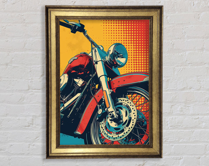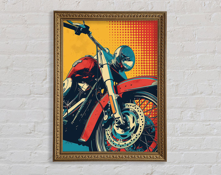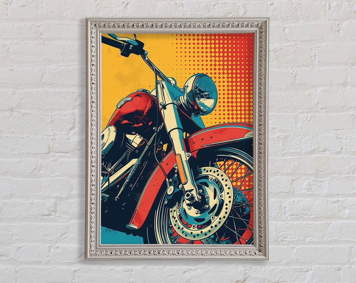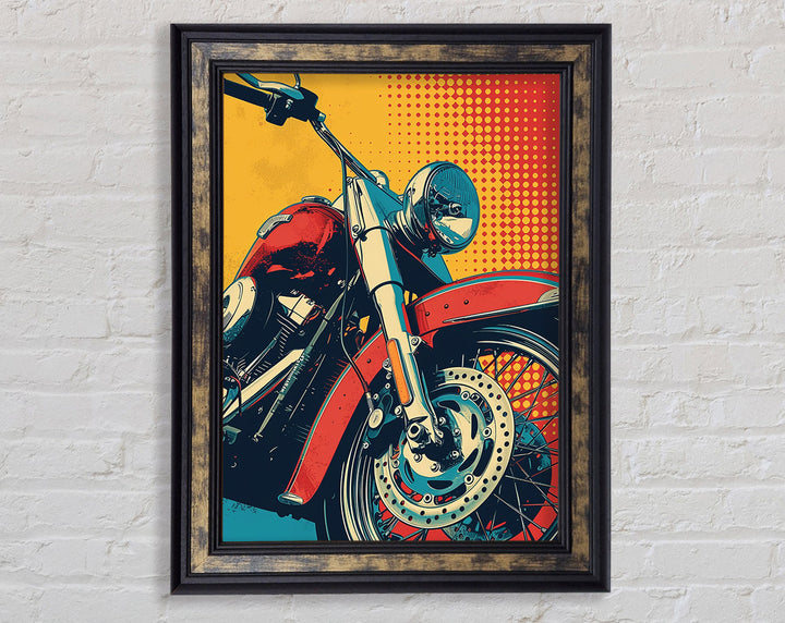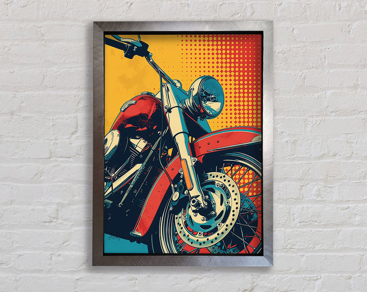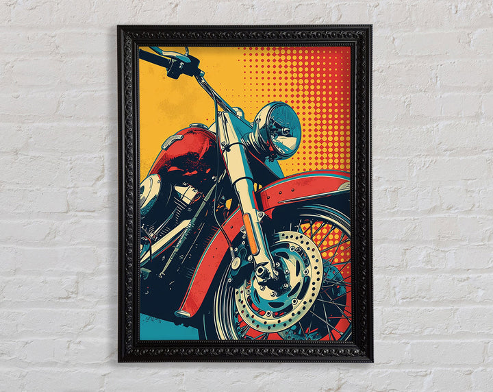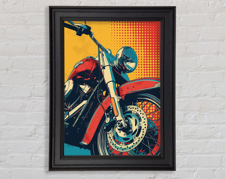 Rev up your home decor with the Motorcycle Halftone Framed Print. This striking piece of framed art captures the essence of freedom and adventure. Available in six sizes, from small to oversized, it caters to any space, big or small. Each print is available in a variety of colors, allowing you to match your style effortlessly. Handmade in the United Kingdom, this artwork promises high-quality craftsmanship. Ready to hang, it offers a hassle-free decorating solution. Ideal for motorcycle enthusiasts and art lovers alike, this framed print adds a unique and vibrant touch to any room. Elevate your space with this standout piece today!