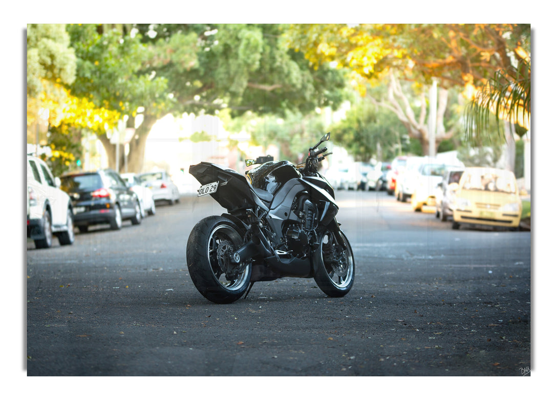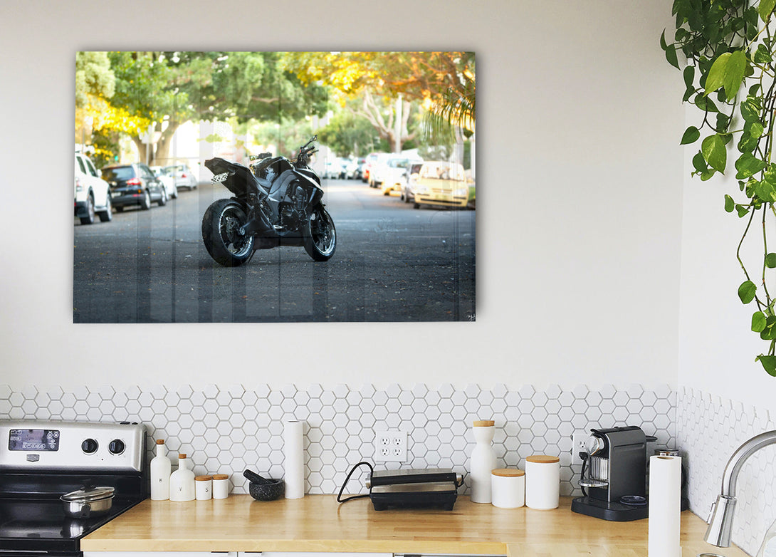 Motorbike on the street acrylic print, UV printed onto 5mm thick acrylic glass. Comes with everything you need to hang on your wall.