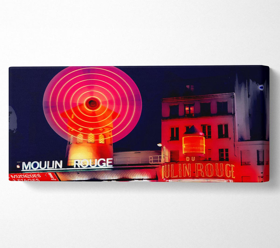 Moulin Rouge canvas, printed on coated polyester canvas. Mounted on to a 44mm box frame, ready to hang.