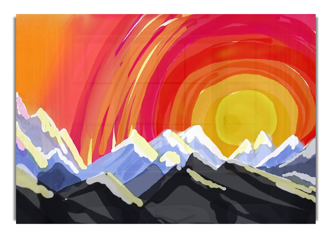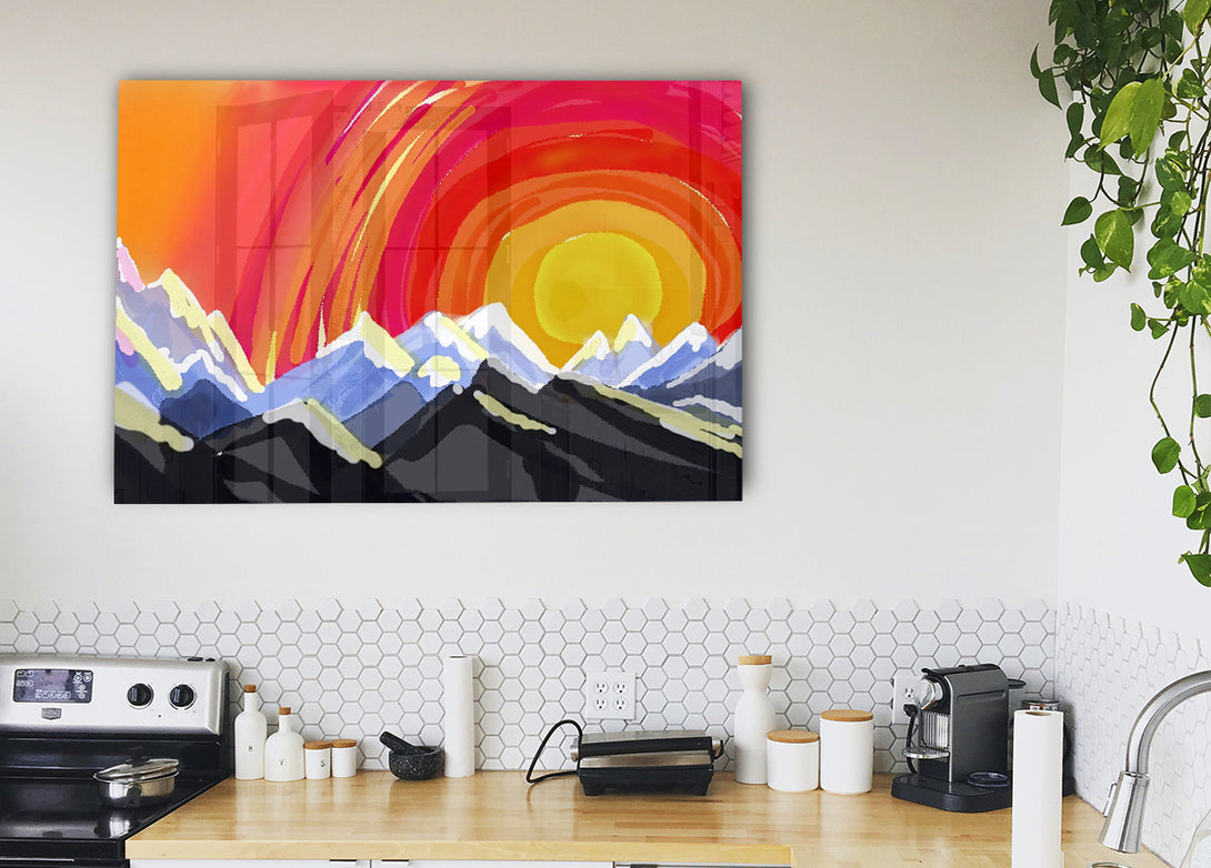 Mountain Peak Sun acrylic print, UV printed onto 5mm thick acrylic glass. Comes with everything you need to hang on your wall.