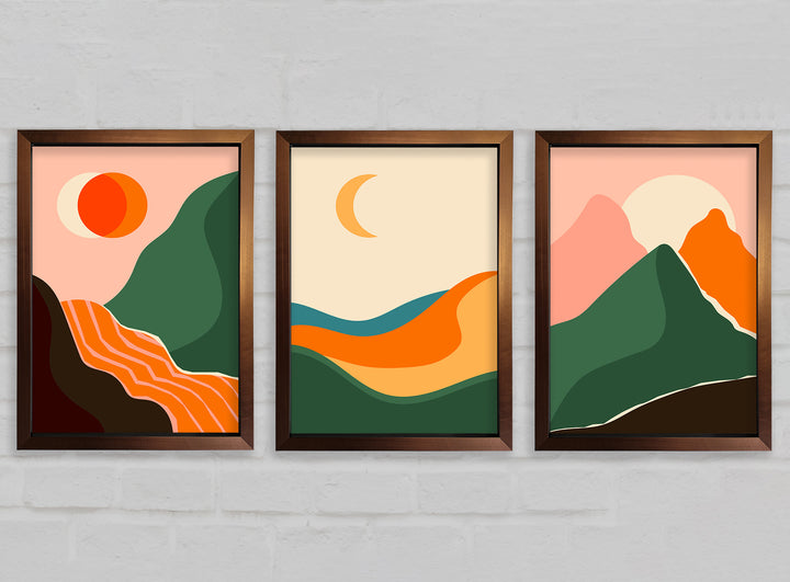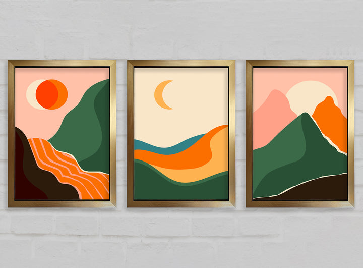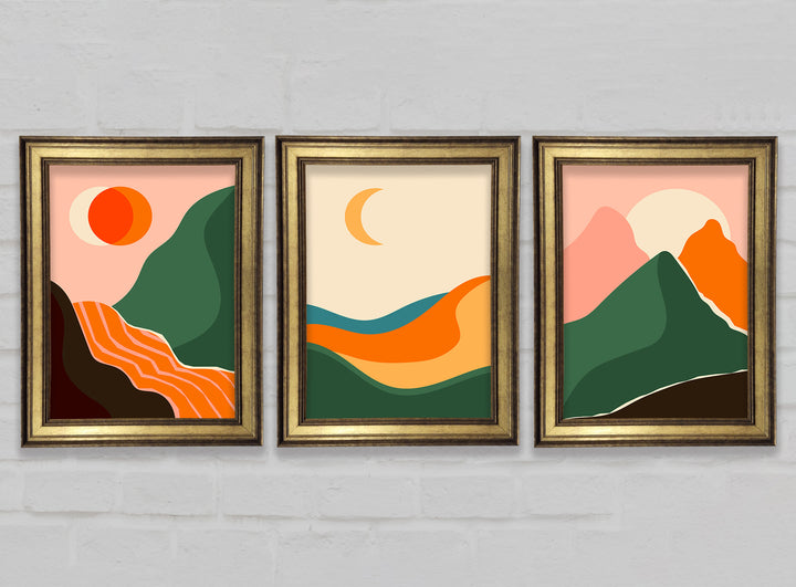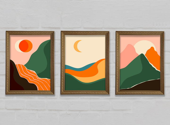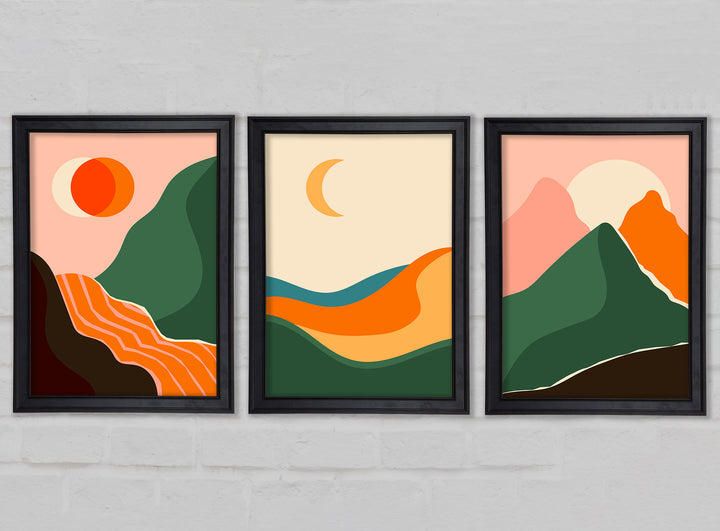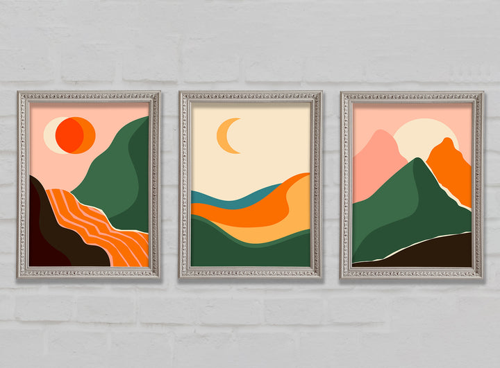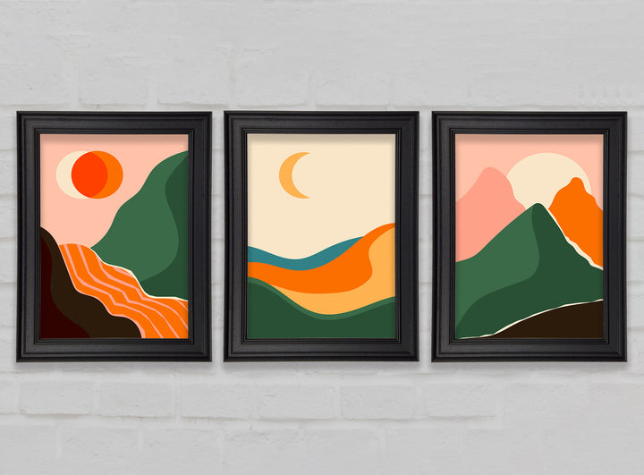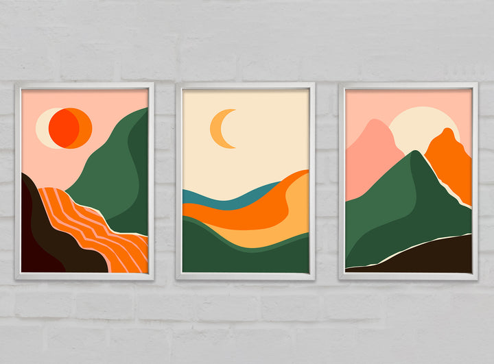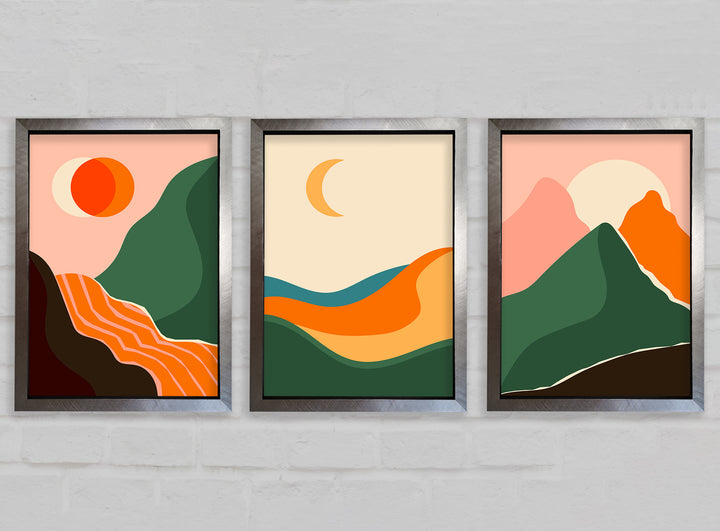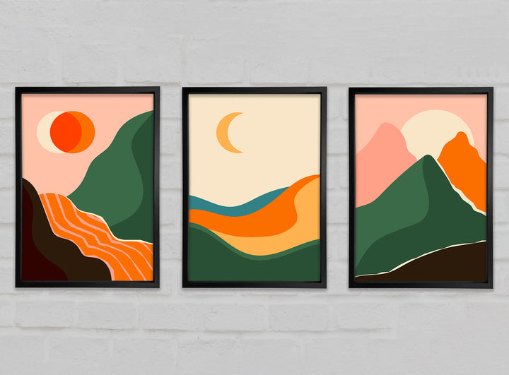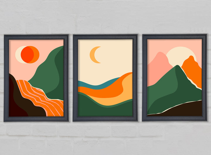 Mountains Of Contemporary Art set of 3 framed print wall art, available in mutiple frame colours. Ready to hang from the box and handmade in the United Kingdom.