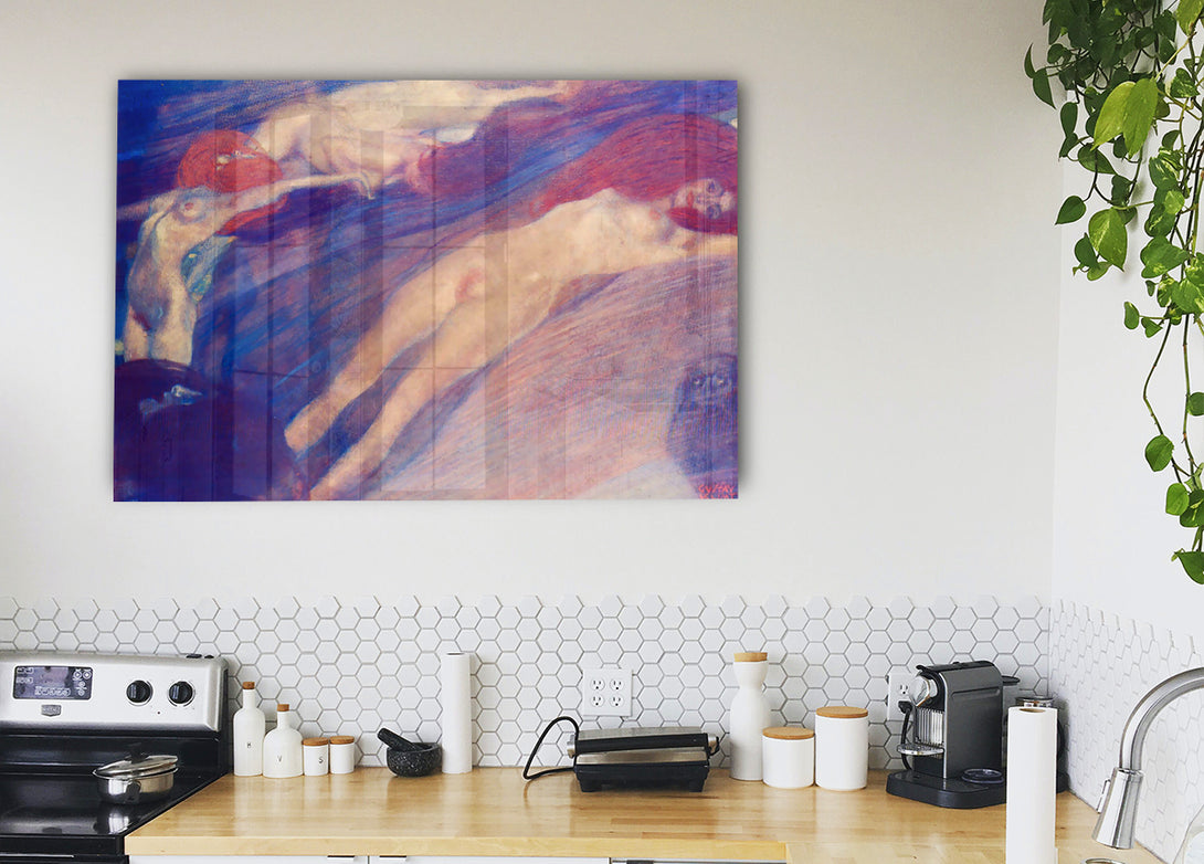 Moving Water By Klimt acrylic print, UV printed onto 5mm thick acrylic glass. Comes with everything you need to hang on your wall.