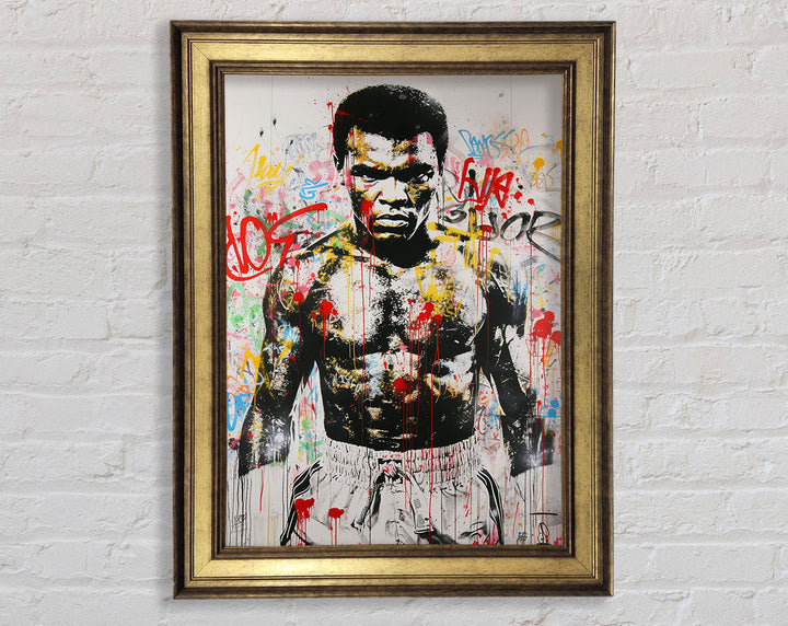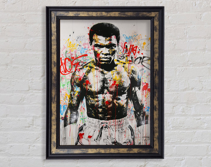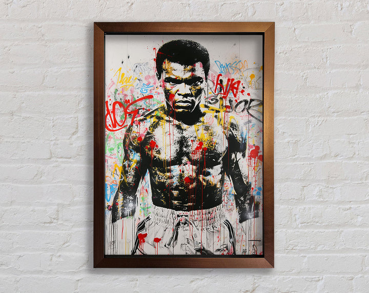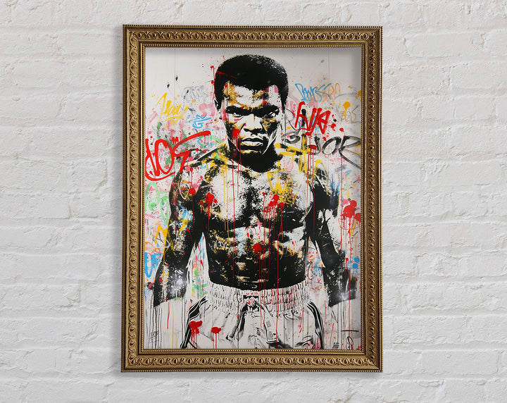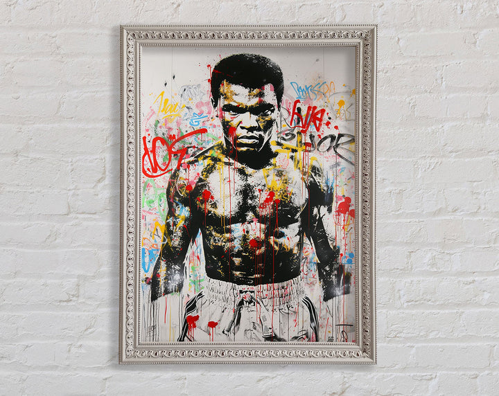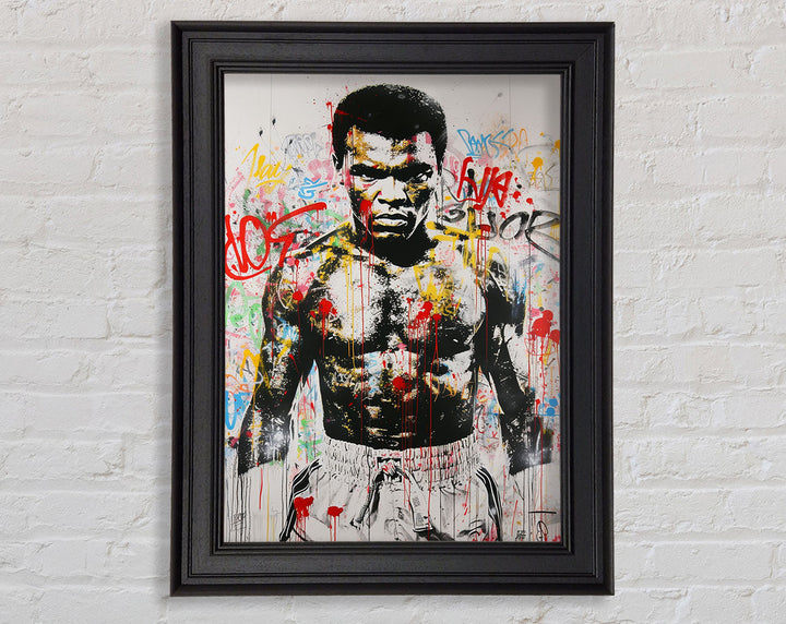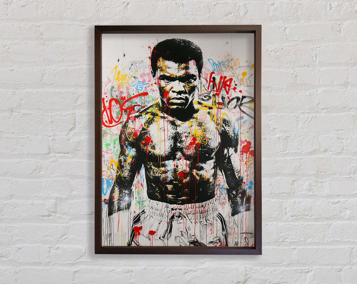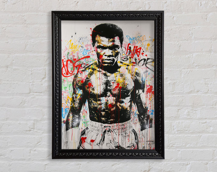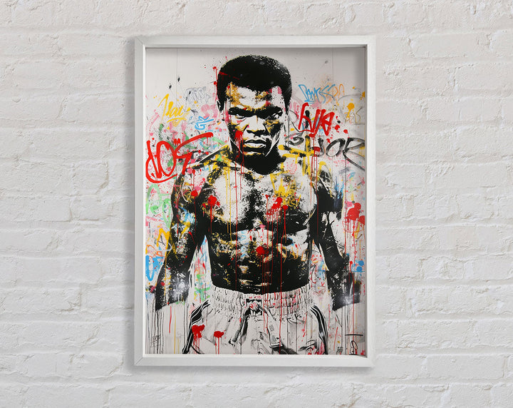 Introducing the Muhammad Ali Graffiti Boxing Framed Print, a striking piece of framed art that captures the spirit of the iconic boxing legend. This unique piece blends vibrant graffiti art with a powerful image of Muhammad Ali, making it a standout addition to any room. Available in six sizes ranging from small to oversized, you can find the perfect fit for your space. Choose from a variety of colors to match your decor. Each print is handmade in the United Kingdom, ensuring exceptional quality and craftsmanship. Ready to hang, this framed art is a convenient and stylish way to celebrate the legacy of Muhammad Ali.