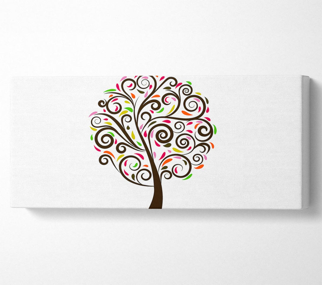 Multi-Coloured Tree canvas, printed on coated polyester canvas. Mounted on to a 44mm box frame, ready to hang.