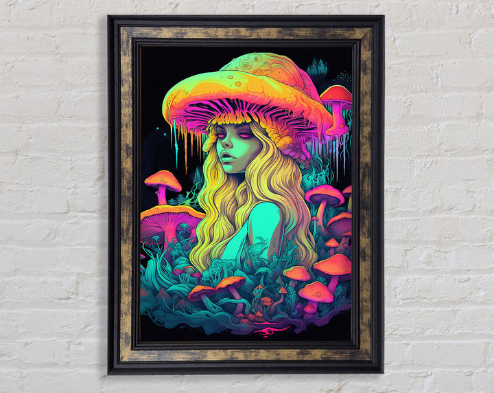 Introducing the Mushroom Acid Framed Print, a stunning piece of framed art that adds a unique touch to any room. This vibrant artwork is available in six sizes, ranging from small to oversized, ensuring a perfect fit for any space. With a variety of colors to choose from, you can easily match this print to your existing decor. Each piece is handmade in the United Kingdom, guaranteeing top-notch quality and craftsmanship. The print comes ready to hang, making it convenient to display right out of the box. Elevate your home or office with this eye-catching, beautifully crafted Mushroom Acid Framed Print today!