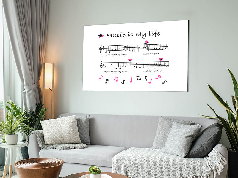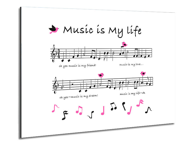 Music Is My Life White Printed on brushed aluminium dibond. A modern way to display art and easy to maintain.