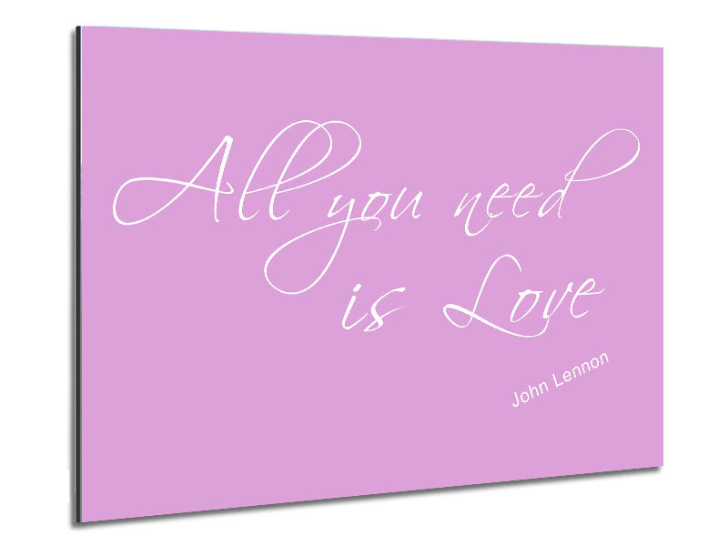 Music Quote All You Need Is Love 2 Pink Printed on brushed aluminium dibond. A modern way to display art and easy to maintain.