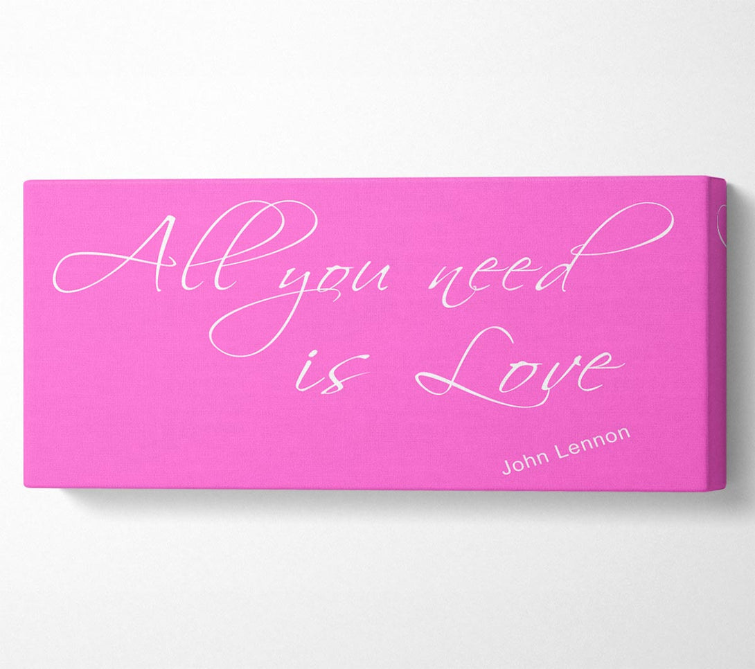 Picture of Music Quote All You Need Is Love 2 Vivid Pink Panoramic Canvas Wall Art