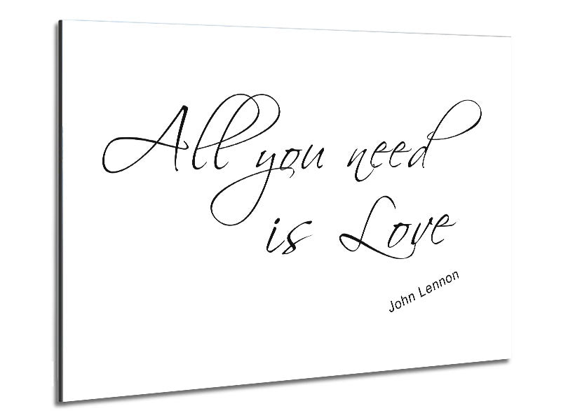 Music Quote All You Need Is Love 2 White Printed on brushed aluminium dibond. A modern way to display art and easy to maintain.