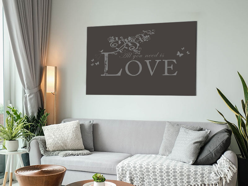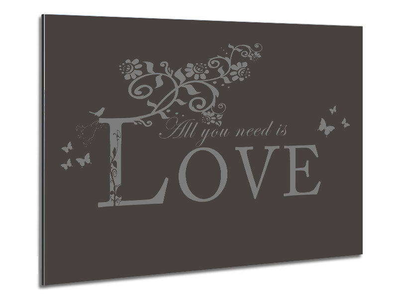 Music Quote All You Need Is Love Chocolate Printed on brushed aluminium dibond. A modern way to display art and easy to maintain.