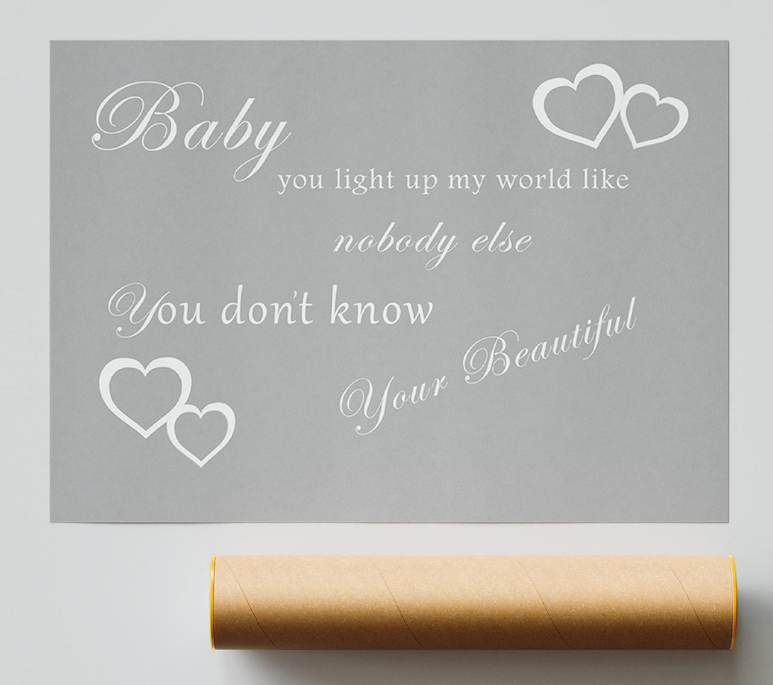 Our Music Quote Baby You Light Up My World 1D Grey White Poster is printed 260 GSM premium lustre paper that offers vibrant colours and exceptional detail.