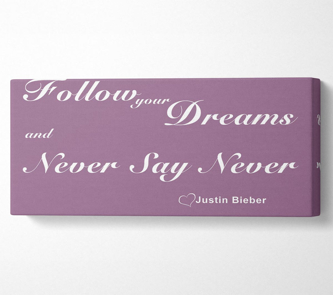 Picture of Music Quote Follow Your Dreams Justin Bieber Dusty Pink Panoramic Canvas Wall Art