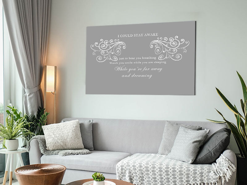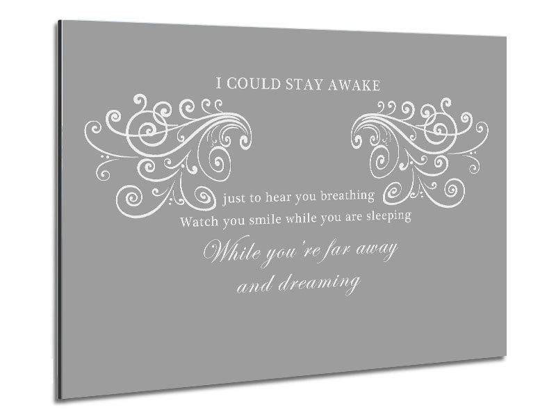 Music Quote I Could Stay Awake Aerosmith Grey White Printed on brushed aluminium dibond. A modern way to display art and easy to maintain.