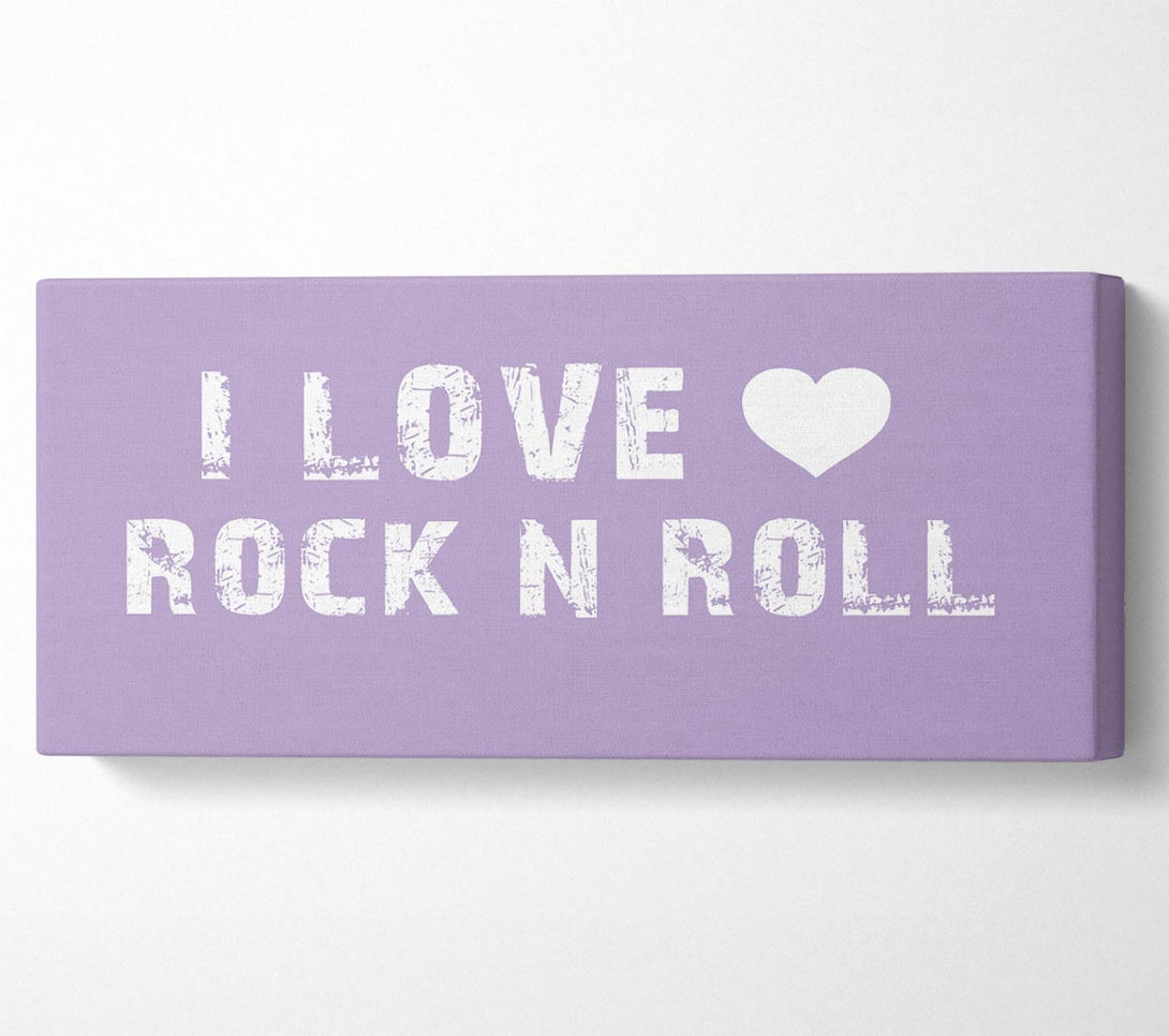 Music Quote I Love Rock N Roll Lilac canvas, printed on coated polyester canvas. Mounted on to a 44mm box frame, ready to hang.