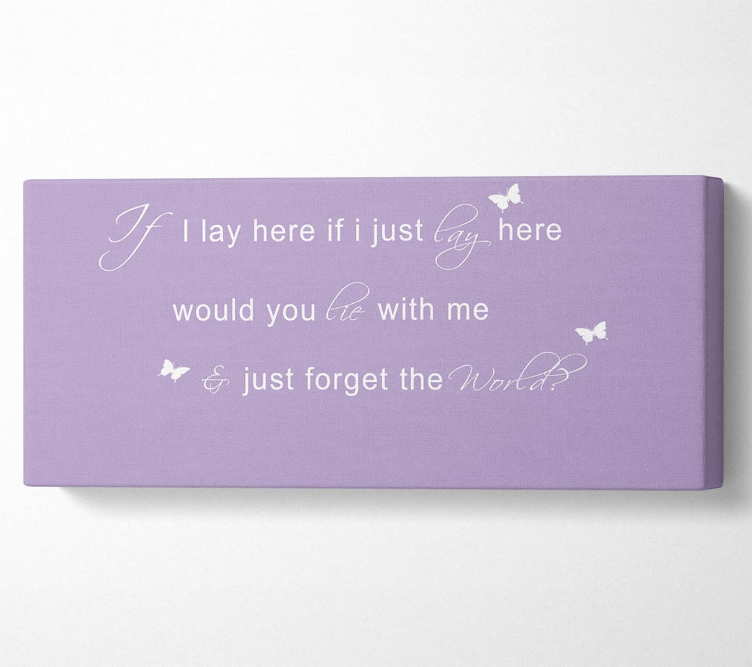 Music Quote If I Lay Here Snow Patrol 2 Lilac canvas, printed on coated polyester canvas. Mounted on to a 44mm box frame, ready to hang.