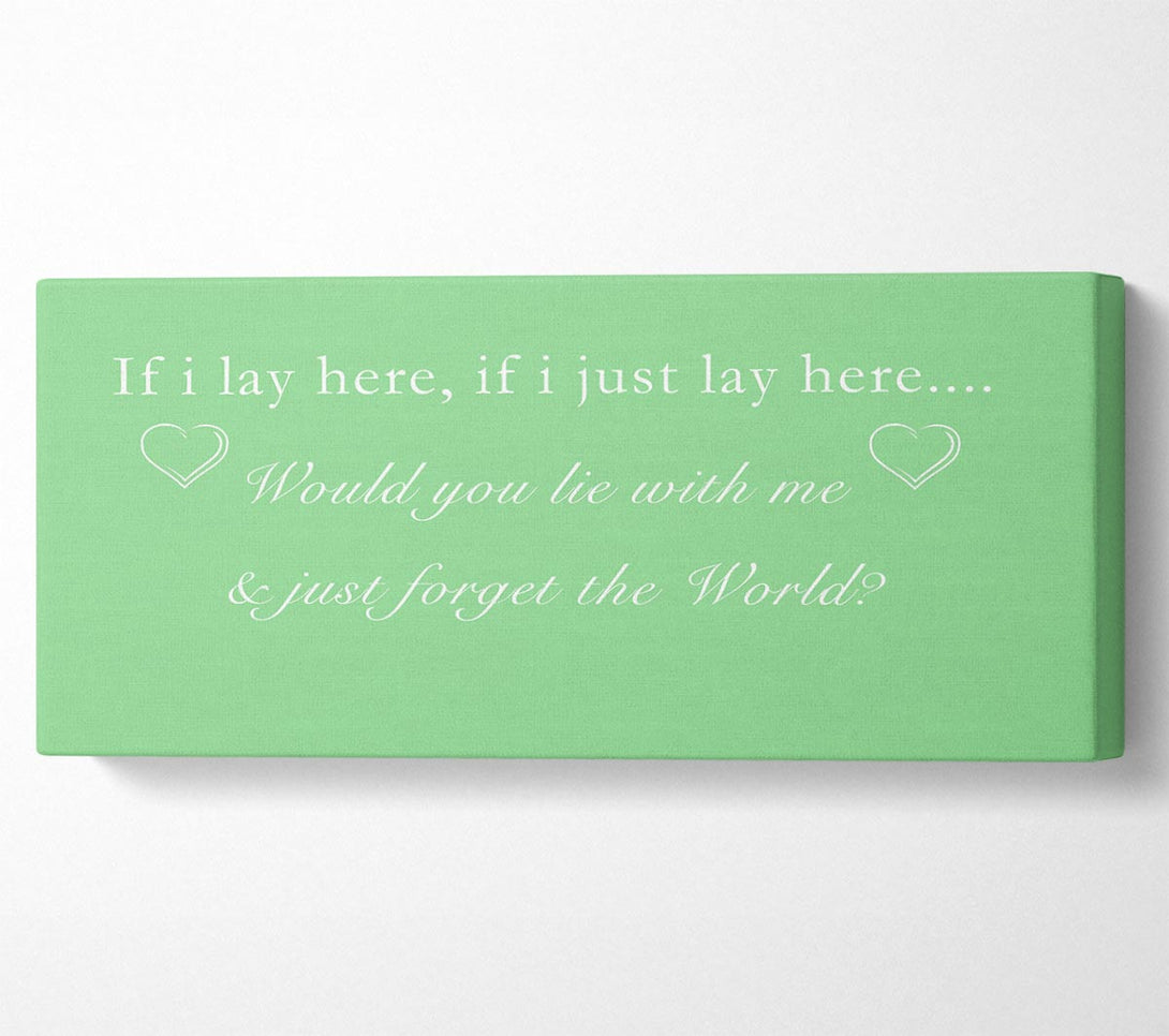 Music Quote If I Lay Here Snow Patrol Green canvas, printed on coated polyester canvas. Mounted on to a 44mm box frame, ready to hang.