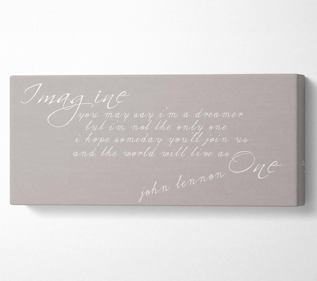Music Quote Imagine John Lennon Beige canvas, printed on coated polyester canvas. Mounted on to a 44mm box frame, ready to hang.