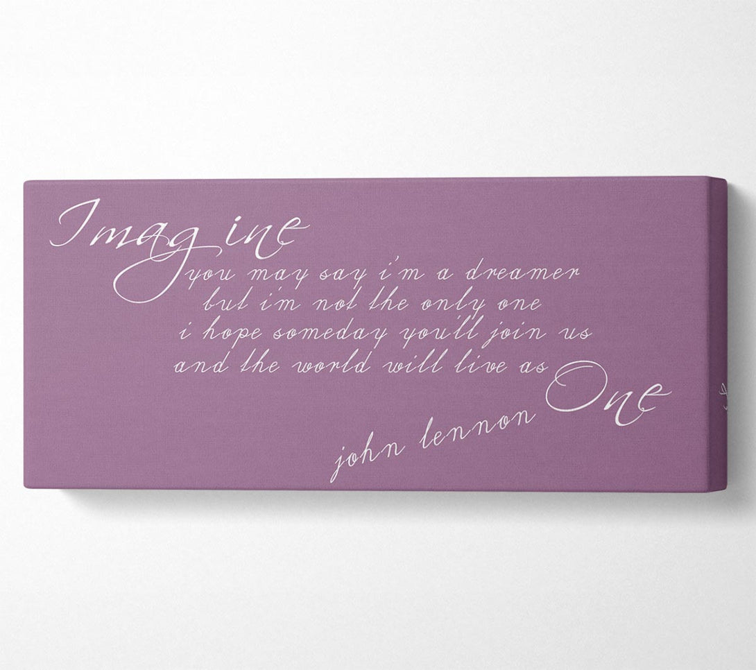 Music Quote Imagine John Lennon Dusty Pink canvas, printed on coated polyester canvas. Mounted on to a 44mm box frame, ready to hang.