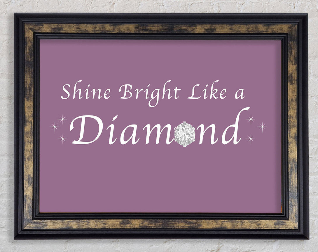 Music Quote Shine Bright Like A Diamond Rihanna Dusty Pink Framed Print