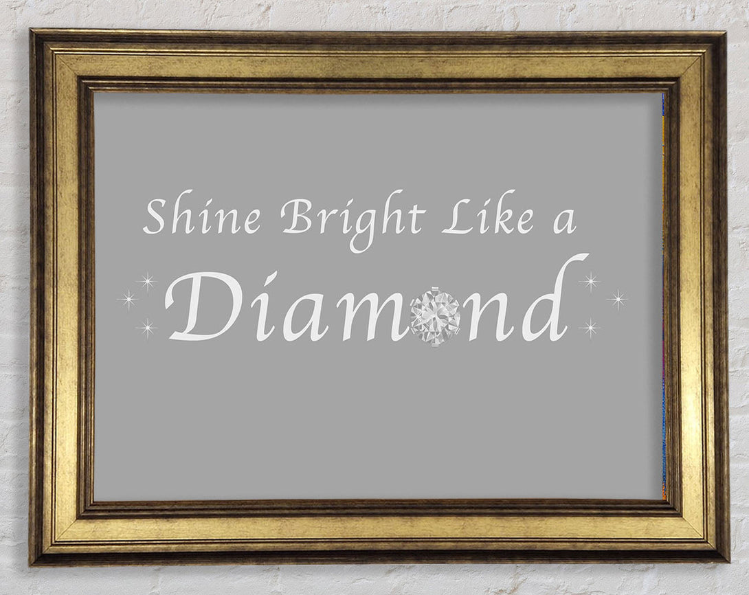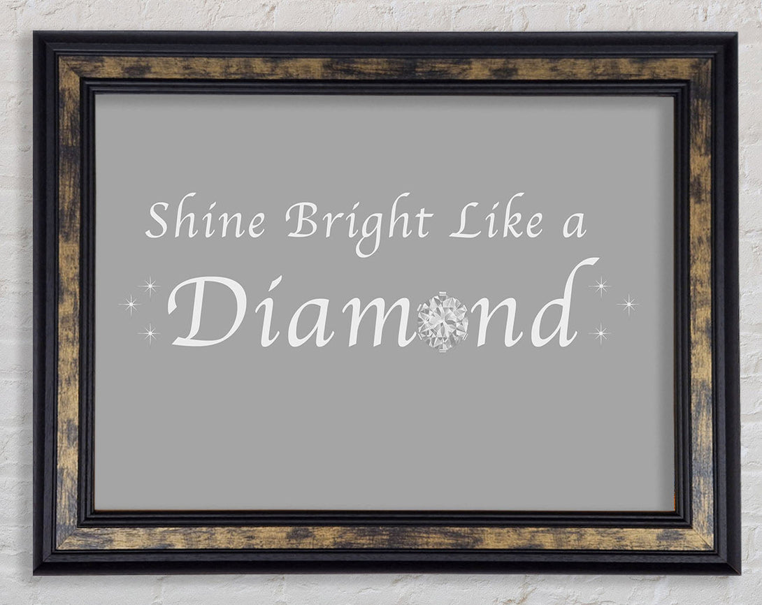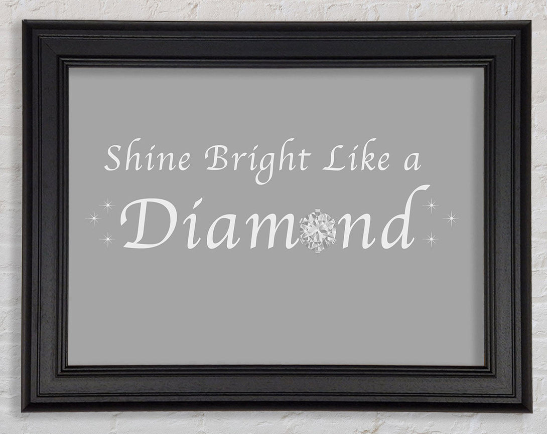 Music Quote Shine Bright Like A Diamond Rihanna Grey White Framed Print