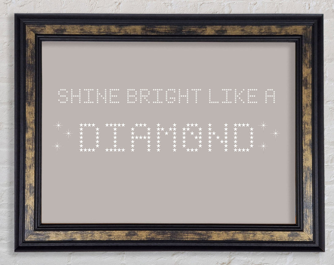 Music Quote Shine Bright Rihanna Beige Framed Print