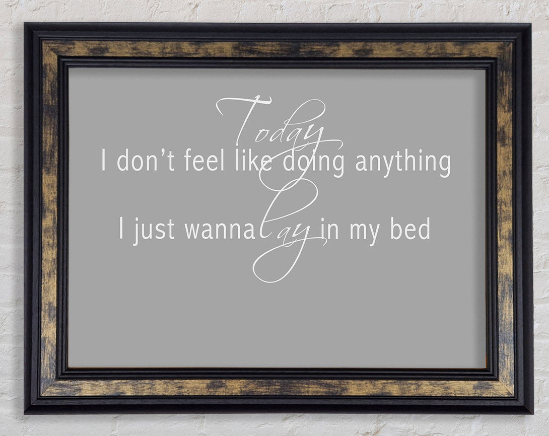 Music Quote Today I Dont Feel Like Bruno Mars Grey White Framed Print
