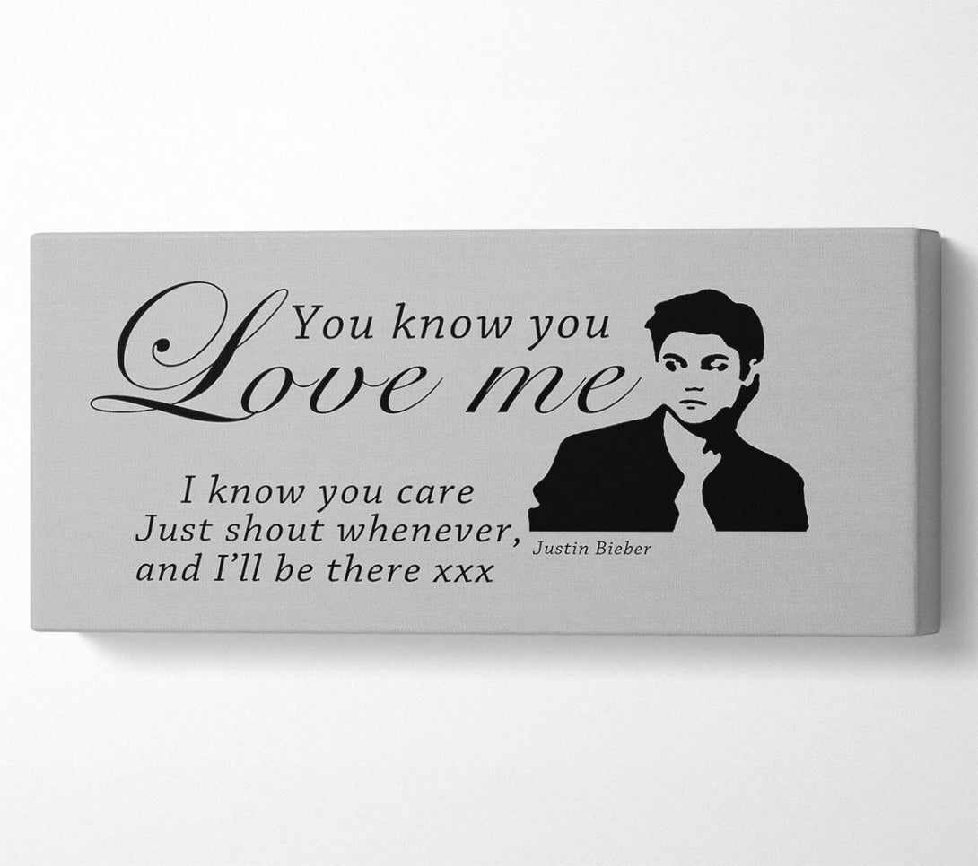 Picture of Music Quote You Know You Love Me Justin Bieber Grey Panoramic Canvas Wall Art