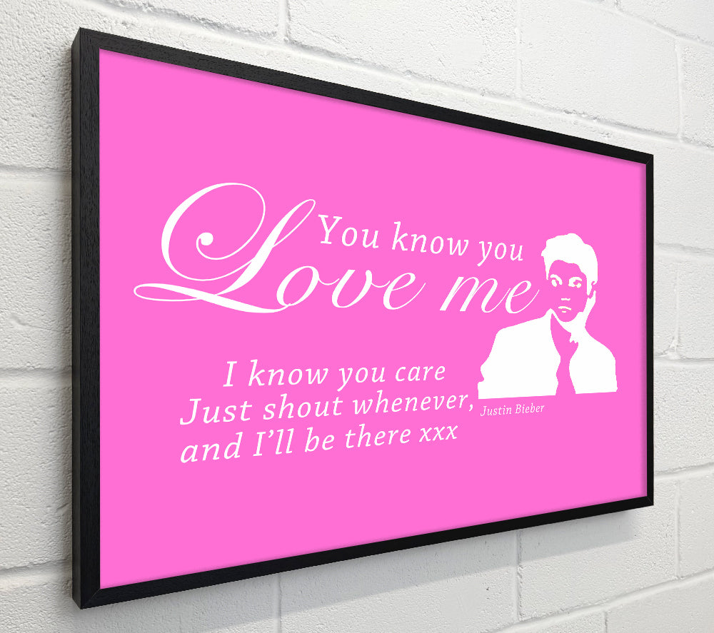 Music Quote You Know You Love Me Justin Bieber Vivid Pink