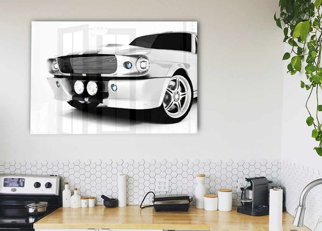 Mustang Grill acrylic print, UV printed onto 5mm thick acrylic glass. Comes with everything you need to hang on your wall.