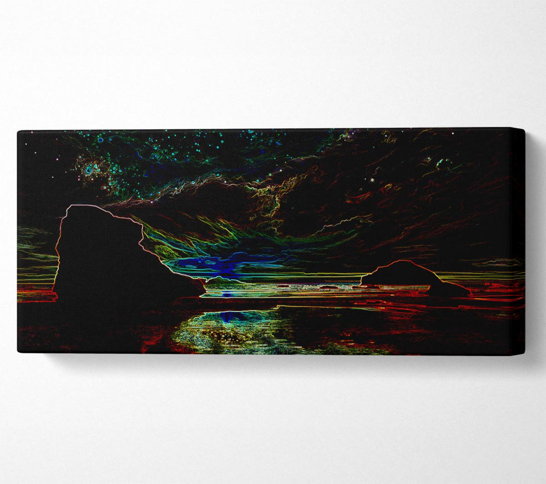 Mystic Landscape canvas, printed on coated polyester canvas. Mounted on to a 44mm box frame, ready to hang.