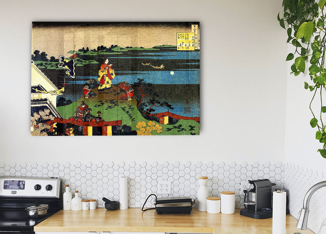 Nakamaro Looking At The Moon By Hokusai acrylic print, UV printed onto 5mm thick acrylic glass. Comes with everything you need to hang on your wall.