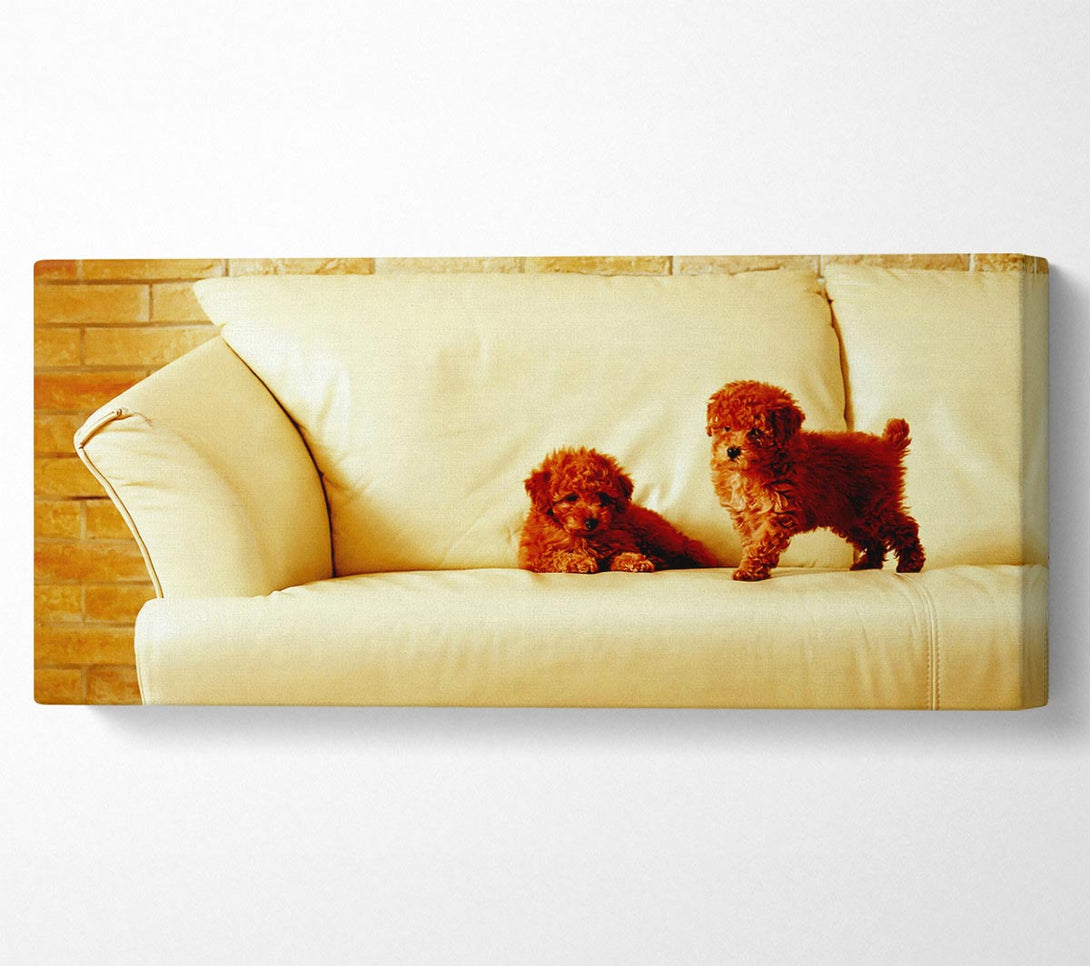 Picture of Naughty Puppy Fun Panoramic Canvas Wall Art