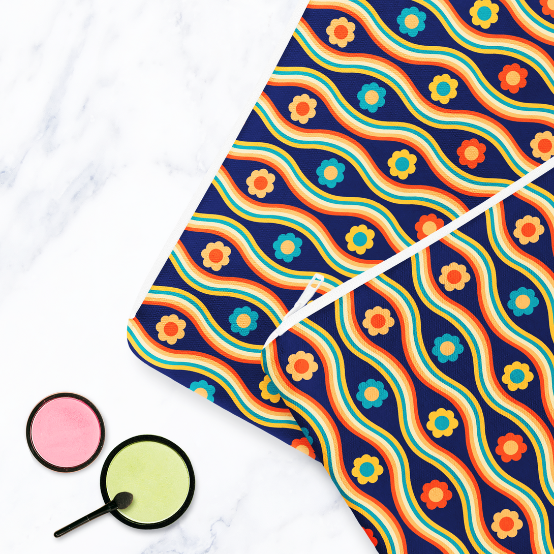 Navy Blue Retro Floral Make Up bag