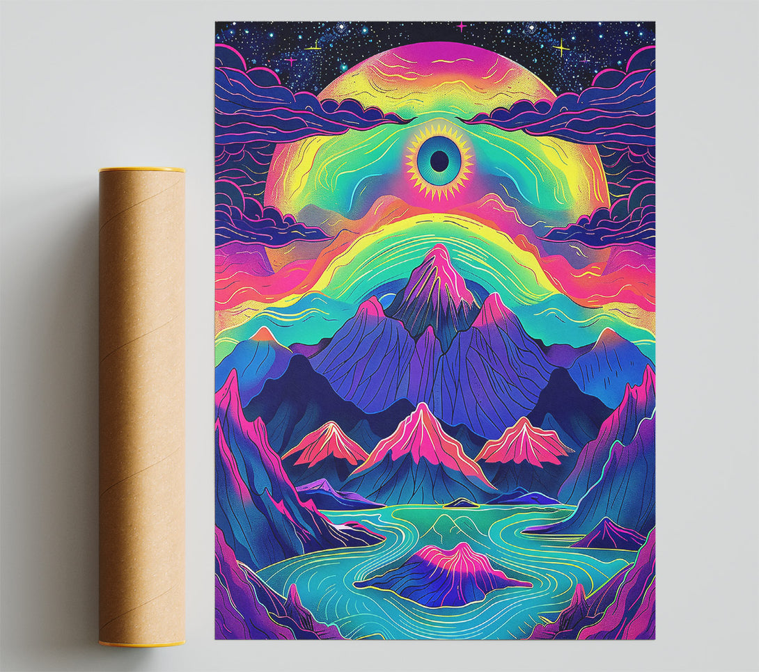 Our Neon Blue Mountain Dreams Poster is printed 260 GSM premium lustre paper that offers vibrant colours and exceptional detail.