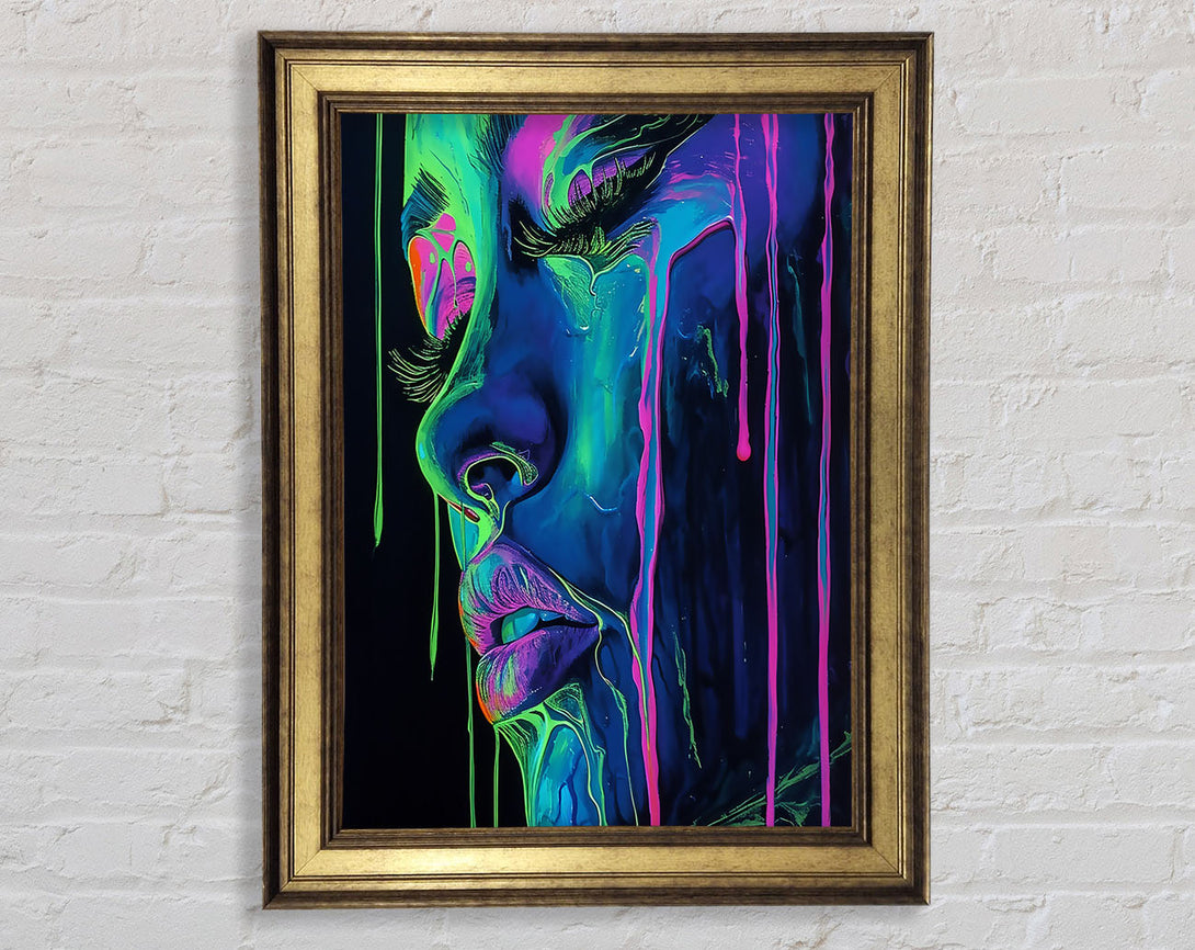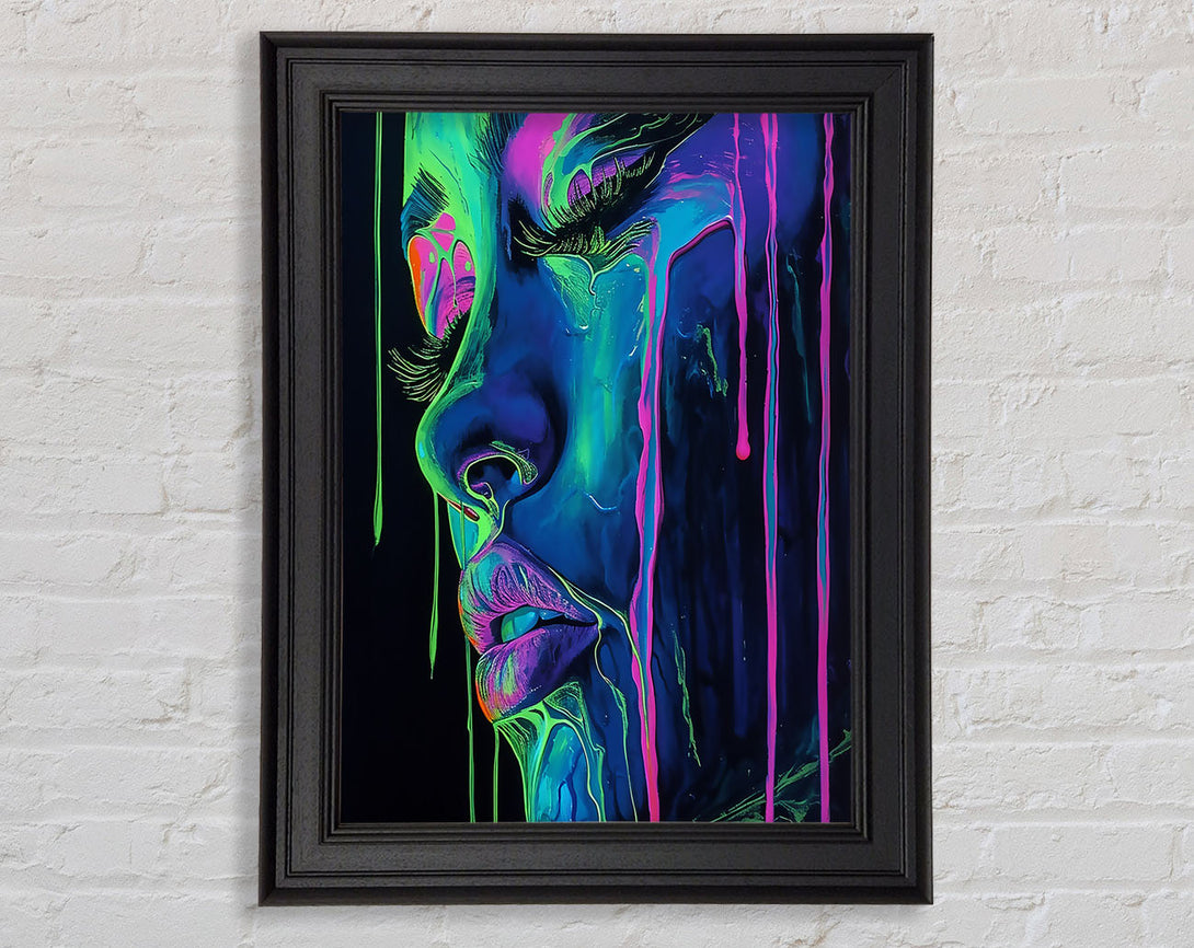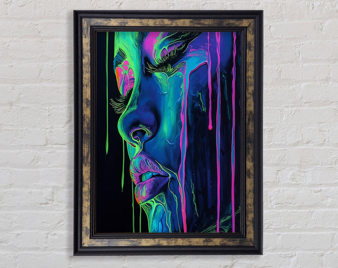 Neon Dripping Face Framed Print
