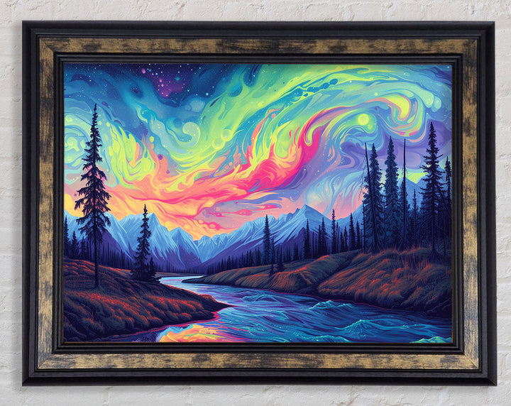 Neon Flow River Framed Print