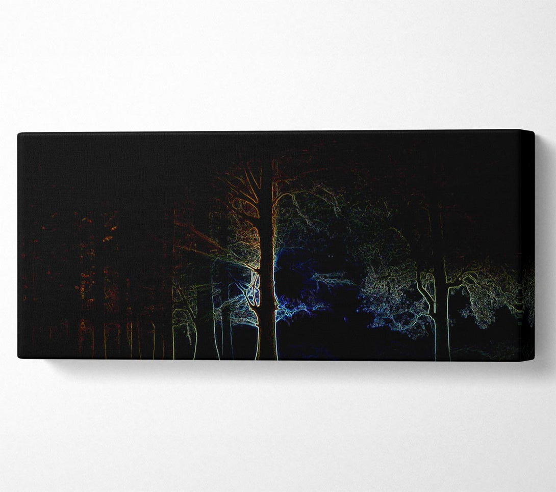 Neon Forrest canvas, printed on coated polyester canvas. Mounted on to a 44mm box frame, ready to hang.