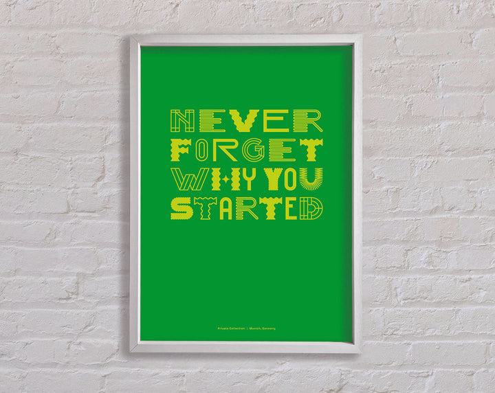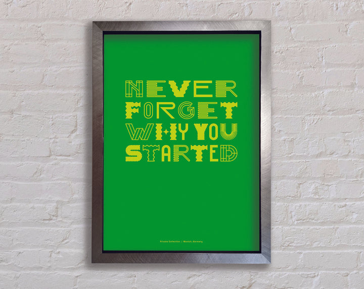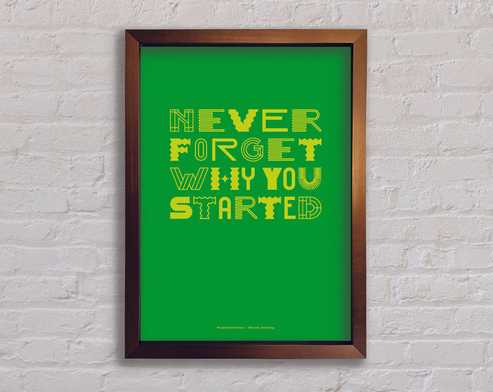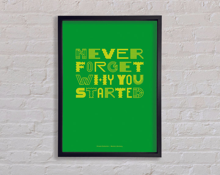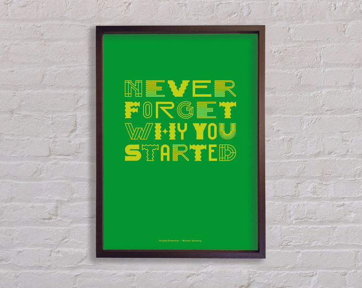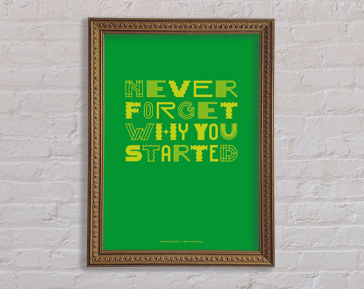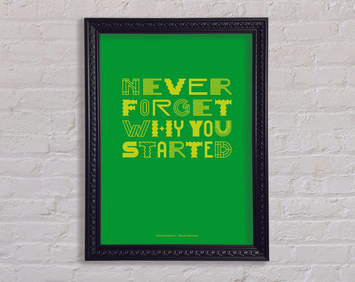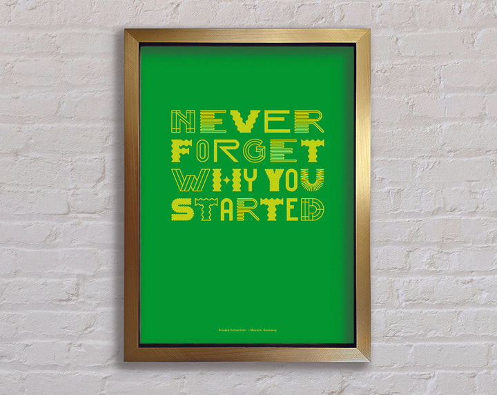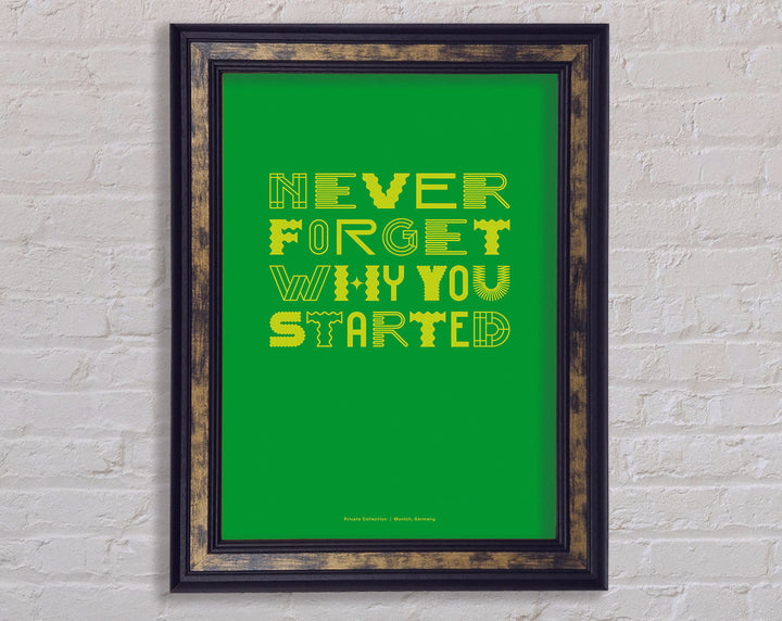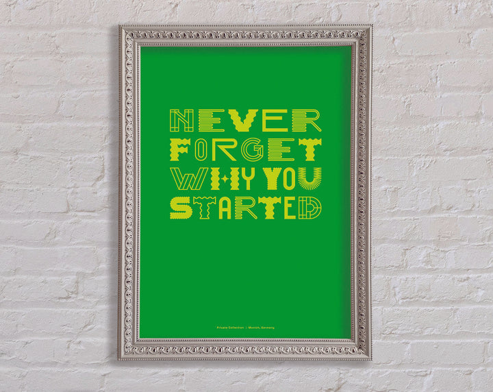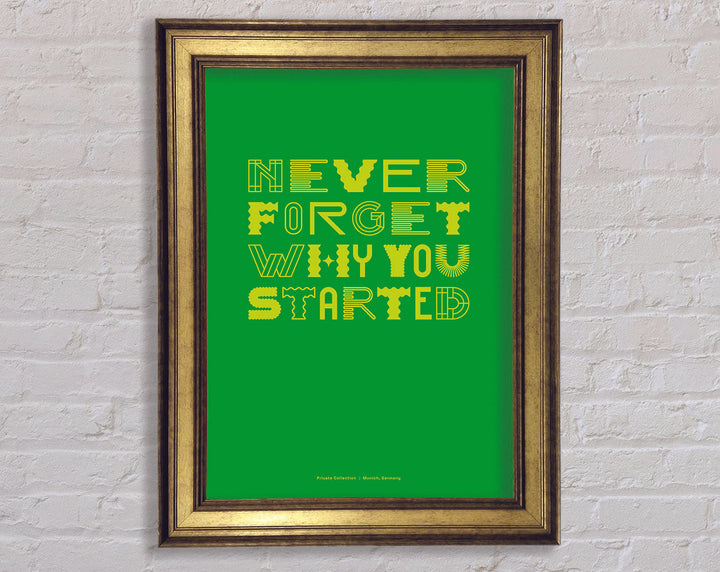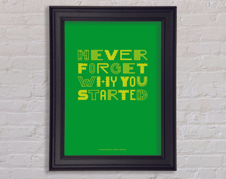 Introducing the "Never Forget Why You Started" Framed Print – a beautiful piece of framed art designed to inspire and motivate. Handmade in the United Kingdom, this stunning print is available in six different sizes, ranging from small to oversized, making it perfect for any space. Choose from a variety of colors to match your décor and personal style. Each print comes ready to hang, so you can easily place it on your wall without any hassle. The high-quality craftsmanship ensures durability and a polished finish, adding a touch of elegance to your home or office. Keep your goals in sight and your spirits high with this uplifting and stylish addition to your space.