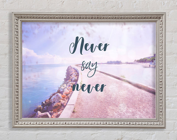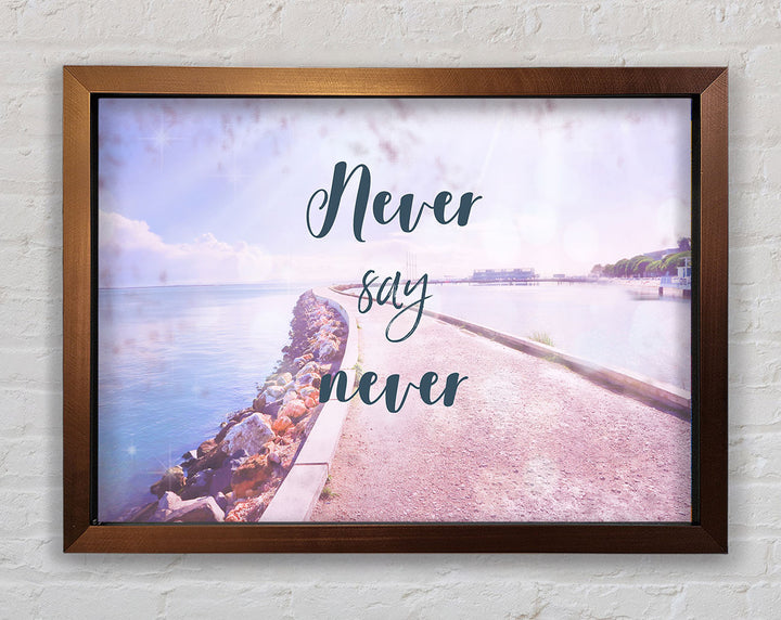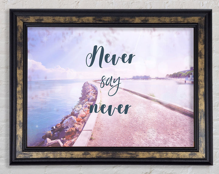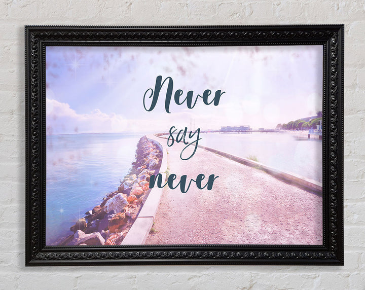 Introducing the Never Say Never Framed Print, perfect for adding a touch of inspiration to any room. This stunning framed art piece is available in six sizes, ranging from small to oversized, ensuring a perfect fit for any space. With a variety of colors to choose from, you can effortlessly match it to your existing decor. Each print is meticulously handmade in the United Kingdom, ensuring high-quality craftsmanship and attention to detail. Ready to hang straight out of the box, this framed art provides a hassle-free way to elevate your home or office. Transform your space with the Never Say Never Framed Print today!