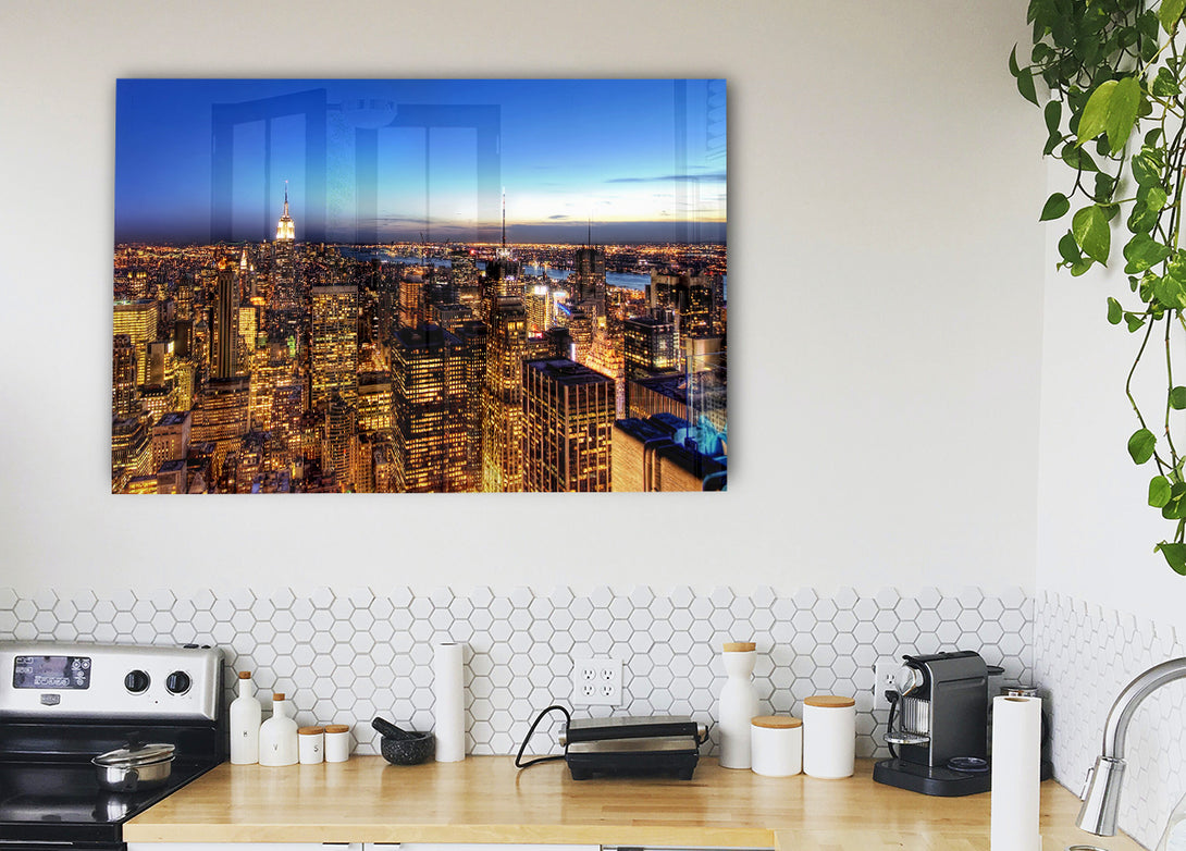 New York At Dusk acrylic print, UV printed onto 5mm thick acrylic glass. Comes with everything you need to hang on your wall.