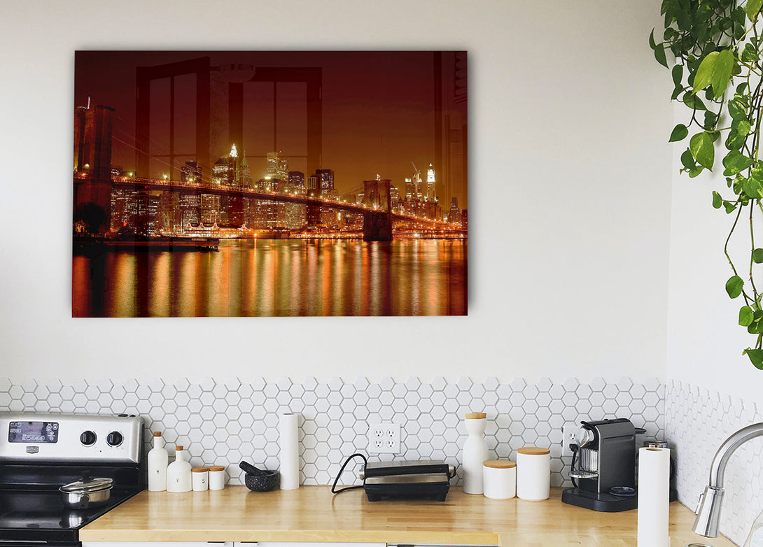 New York Bridge Glow acrylic print, UV printed onto 5mm thick acrylic glass. Comes with everything you need to hang on your wall.