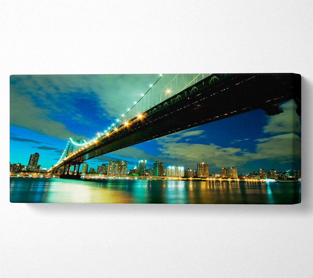 Picture of New York Brooklyn Bridge From Below Panoramic Canvas Wall Art