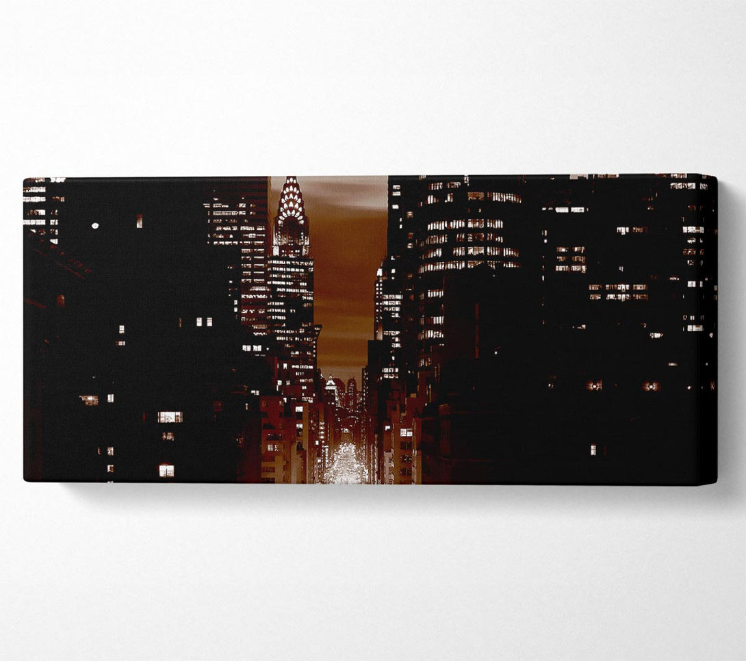 New York City 5Th Avenue Brown canvas, printed on coated polyester canvas. Mounted on to a 44mm box frame, ready to hang.