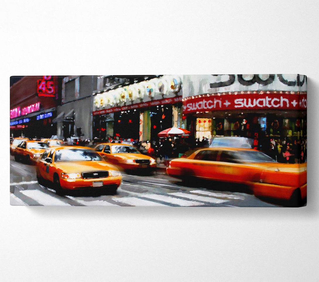 Picture of New York City 5Th Avenue Yellow Cabs Panoramic Canvas Wall Art