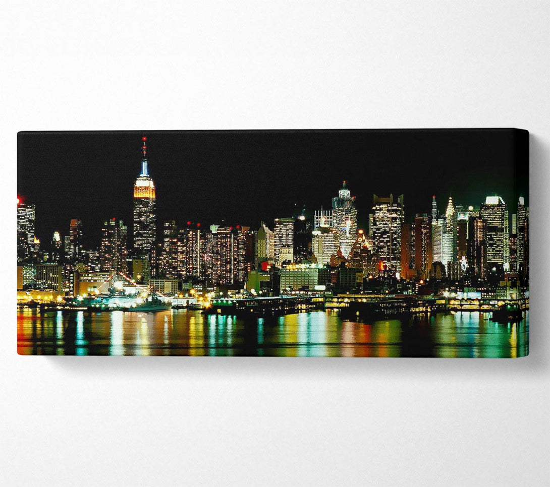 New York City Glow canvas, printed on coated polyester canvas. Mounted on to a 44mm box frame, ready to hang.