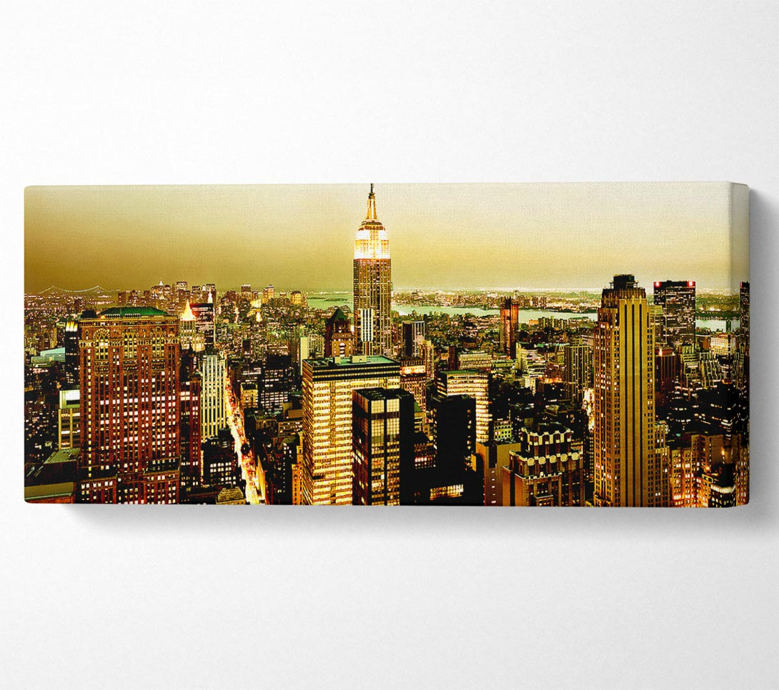 New York City Ochre canvas, printed on coated polyester canvas. Mounted on to a 44mm box frame, ready to hang.