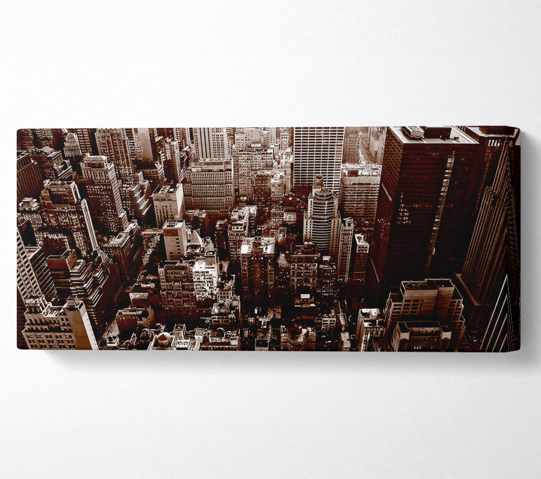 New York City View From The Empire State Sepia canvas, printed on coated polyester canvas. Mounted on to a 44mm box frame, ready to hang.
