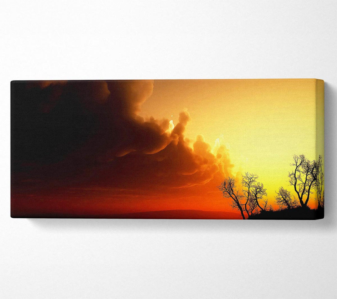 Nightfall canvas, printed on coated polyester canvas. Mounted on to a 44mm box frame, ready to hang.