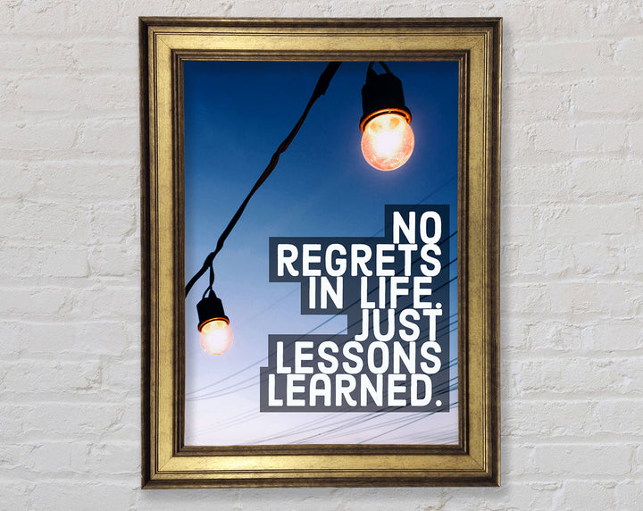 Introducing the No Regrets In Life Framed Print, a beautiful piece of framed art that inspires and uplifts any space. Handmade in the United Kingdom, this print is crafted with care and attention to detail. It comes in six sizes, ranging from small to oversized, making it perfect for any room size or wall space. Choose from a variety of colors to match your decor seamlessly. The print arrives ready to hang, allowing you to enjoy it immediately without any hassle. This framed art is not only a stunning addition to your home but also a constant reminder to live life fully with no regrets.